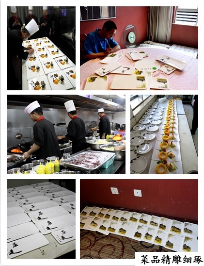 主桌五道熱菜均為葷素搭配、中西結(jié)合、融合山西特色和異域美食。在菜肴的盤飾上,廚師團(tuán)隊(duì)別出心裁的將萬里茶道峰會(huì)的標(biāo)志和主題、平遙古城手繪在餐盤上,贏得了客人的聲聲贊譽(yù)!