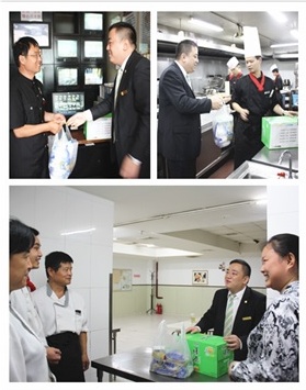 7月22日上午,酒店總經(jīng)理王濤、人事行政部經(jīng)理趙曉慧為酒店員工送去陣陣“清涼”、送上一份關(guān)愛,送去親切的問候,將防暑藥品、涼茶、冰糖等送到奮戰(zhàn)在一線的員工手中,尤其對(duì)外圍安保、PA保潔、客房服務(wù)員、工程維修、廚師等崗位忠于職守的精神表示感謝,并叮囑大家天氣炎熱,要注意防暑降溫,勞逸結(jié)合,確保身體健康。