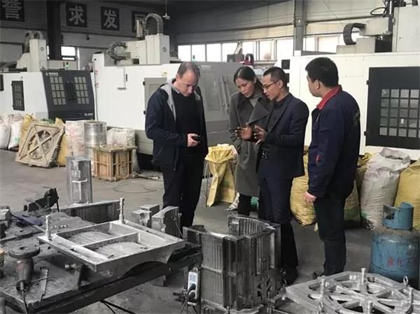 2018年3月22日德國(guó)VEM總部全球戰(zhàn)略采購(gòu)Alexander、VEM(中國(guó))代表周總、中國(guó)區(qū)采購(gòu)熊經(jīng)理一行到訪(fǎng)參觀我集團(tuán)鑄造集聚區(qū),匯鈺鑄造公司梁經(jīng)理、華倫機(jī)電公司薛總、鉅順模具宋總以及公司相關(guān)技術(shù)人員陪同。